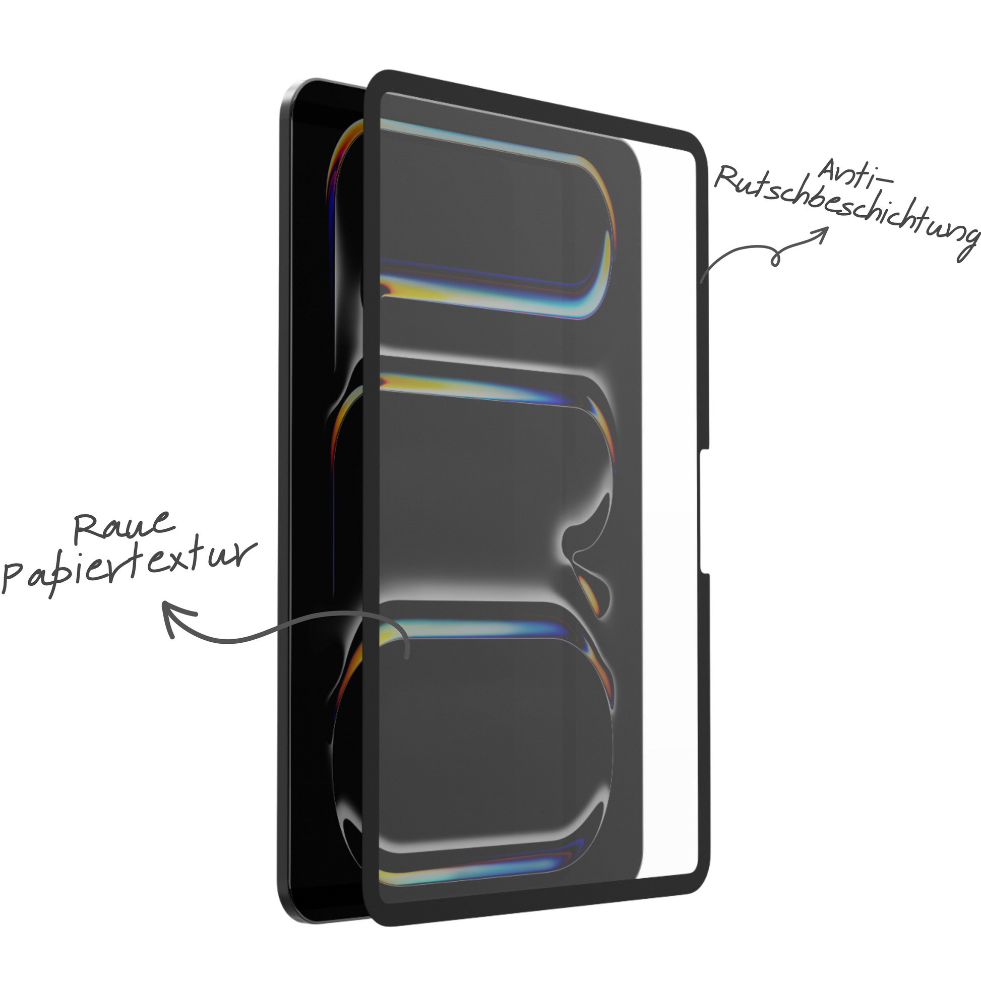 Thanks to its special anti-slip coating, the reusable film adheres securely to your iPad – no adhesive, no bubbles, no frustration. And when you don't need it? Simply remove it – without leaving any residue and in a snap .